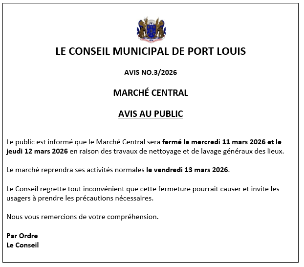 Welcome to the Important Notices section, where you’ll find essential updates and announcements from the City Council of Port Louis.